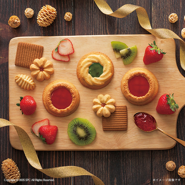 | 内容 | ベイクドクッキー(ストロベリー×2・キウイ)・紅茶リーフ×2・花型イチゴ×2・アメリカン×2 賞味期限:常温で製造日から120日間 |