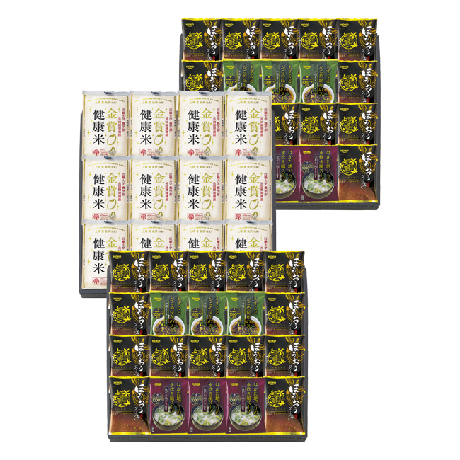 | 内容 | スープ(ほうおう)×28・スープ(はかた水炊き・もずく)各6・金賞健康米150g×12 賞味期限:常温で製造日から360日間 |