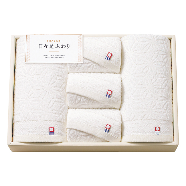 【送料無料】 今治 日々是ふわり バス2P・フェイスタオル3Pセット No.80 (アイボリー)